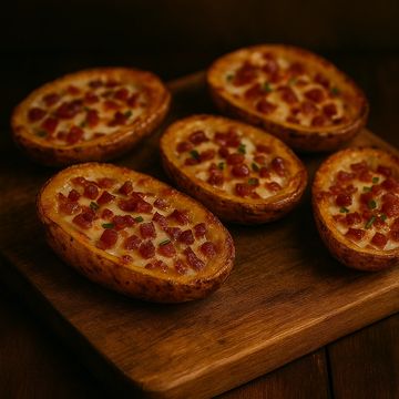 Crispy potato shells loaded with melted cheese and baked to golden perfection. Simple and satisfying.