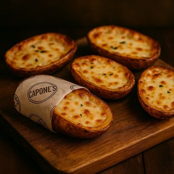Crispy potato shells loaded with bacon and melted cheese, baked to golden perfection. Even the Don wouldn’t share.
