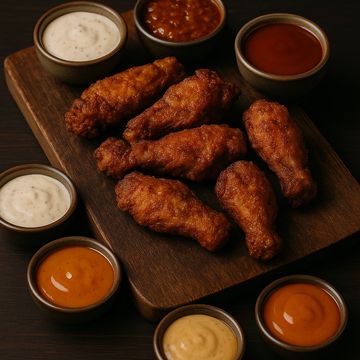 (Nonna's Secret) Tomato Sauce, Capone's Boss Sauce, Bootleg Barrel BBQ, Capone’s White Smoke Ranch, Colt .45 Buffalo, Thousand Island of Deadly Sins, Yakuza Teriyaki Glaze, The Don’s Bolognese Red Sauce, Hitman's Tikka Heat or Tommy Gun Sweet Chilli.