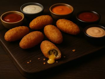 Crispy-coated poppers oozing with molten cheese and a hit of spicy Jalapeno.