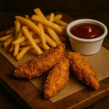 Lightly seasoned chicken tenders made for mini mobsters who like to keep things simple. Served with a small side of fries and a choice of dip - perfect for Junior Wiseguys who mean business at mealtime.