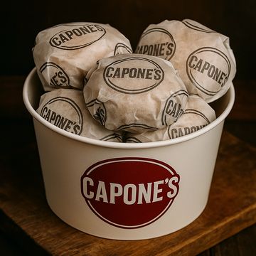 The dirtiest, buttered pizza sub this side of Chicago - packed with chicken, bacon, and onion, smothered in melted mozzarella, topped with crisp lettuce, and finished with our signature Capone’s Boss Sauce - rich, messy, and strictly off the record.