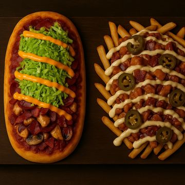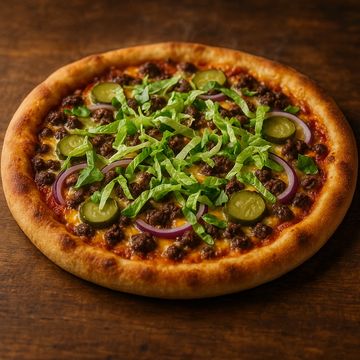 Our signature Thousand Island of Deadly Sins base is loaded with seasoned beef, pickles, red onion, and mozzarella, finished with shredded lettuce after baking.