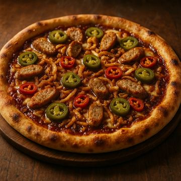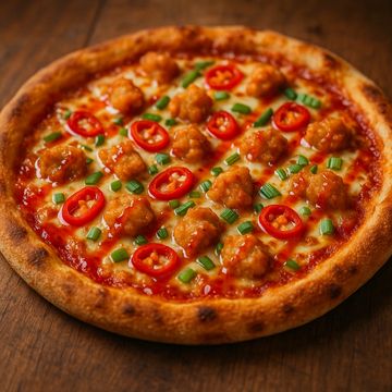 Enjoy our Tommy Gun Sweet Chilli base topped with crispy chicken, red chilli, spring onion, and mozzarella.
