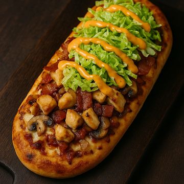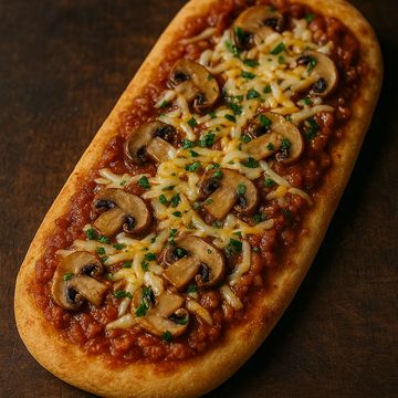 A mouth watering garlic butter pizza sub layered with bolognese, mushrooms, oregano and mozzarella.