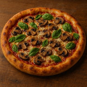 A rich Don’s Bolognese Red Sauce base topped with mozzarella, garlic mushrooms, parmesan, and fresh basil.