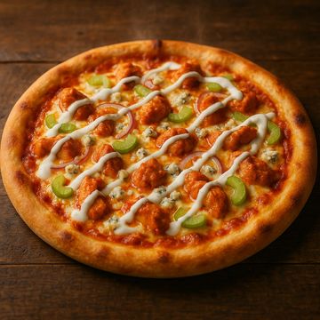Colt .45 Buffalo base stacked with buffalo chicken, blue cheese, celery, and mozzarella, finished with a smooth Capone’s White Smoke Ranch drizzle.